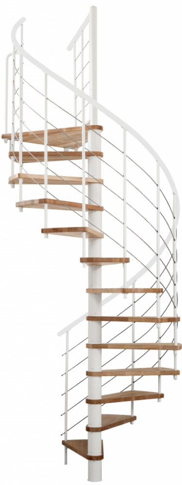 Točité schody Minka Venezia Smart je cenově dostupnější variantou schodiště Venezia. Schody Venezia Smart s klasickým tvarem dřevěných nášlapů, je schodiště stavebnicového tzv. modulového typu. Celou sestavu lze jednoduše a poměrně rychle poskládat z jednotlivých stupňů - tedy modulů. Stupně se vyrábějí z bukového dřeva o tloušťce 35 mm, parketový vzor - cink. Povrch každého stupně je lakován. Na výběr je ze tří odstínů: přírodní, bílý a mořený ořech. Schodiště se vyrábí s průměrem 160 cm, počítáno včetně namontovaného zábradlí. Jednotlivé stupně jsou výškově nastavitelné od 195 do 235 mm. Tato sestava schodiště se skládá z 12 schodů a 1 podesta pro max. výšku podlaží 305 cm. Ke schodišti lze dokoupit maximalně další dva stupně(schody). Zábradlí schodiště je kovové se svislými sloupky o prům. 22 mm s nerezovou výplní (5 prutů) a plastovým madlem o průměru 40 mm. Madlo je dodáno podle vámi zvolené barevné varianty. Všechny kovové díly jsou ošetřeny práškovou barvou. Lze vybírat ze tří barevných variant: bílá RAL 9003, černá RAL 9005, šedá RAL 9006.