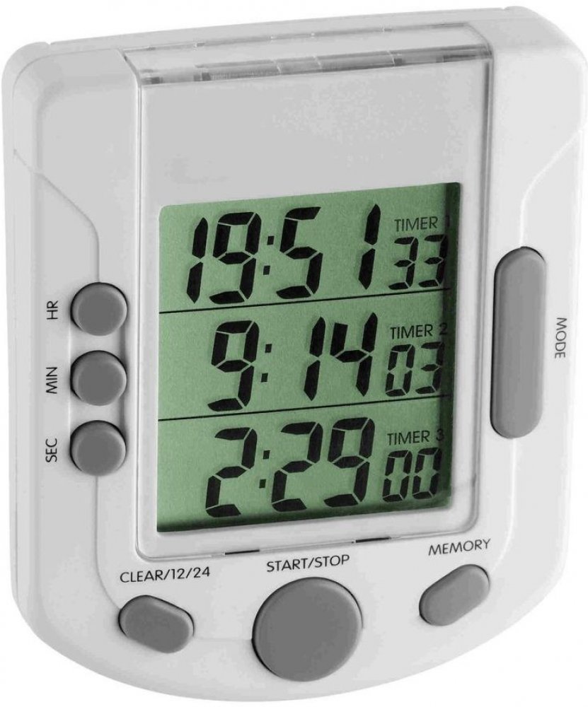 Minutky se 3 časy TFA 38.2020 TRIPLE TIME jsou skvělým pomocníkem při práci v kuchyni. Přístroj kombinuje funkci časovače a stopek, přičemž je možný současný provoz všech tří časů. S minutkami budete díky zobrazení aktuálního času také vědět kolik ho