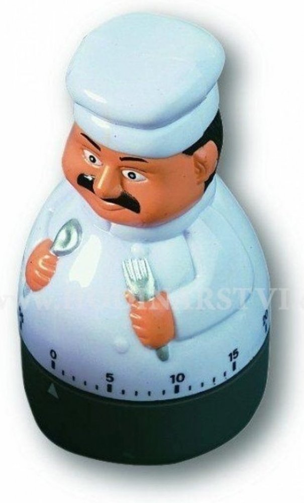 Minutky TFA 38.1008 v designu kuchaře jsou malá, ale praktická pomůcka do každé domácnosti, především do kuchyně. Technické parametryi: Rozměry (Ø x V): 58 mm x 104 mm Rozsah měření: 1 - 60 min Váha: 85 g Materiál: plast