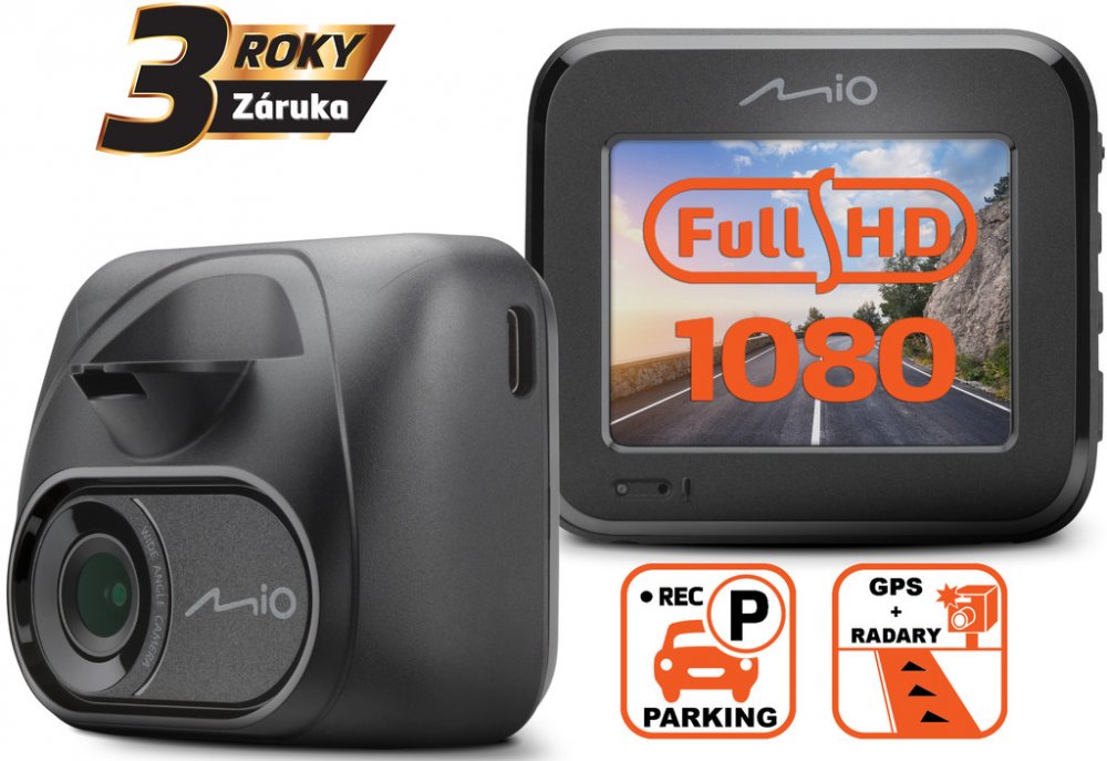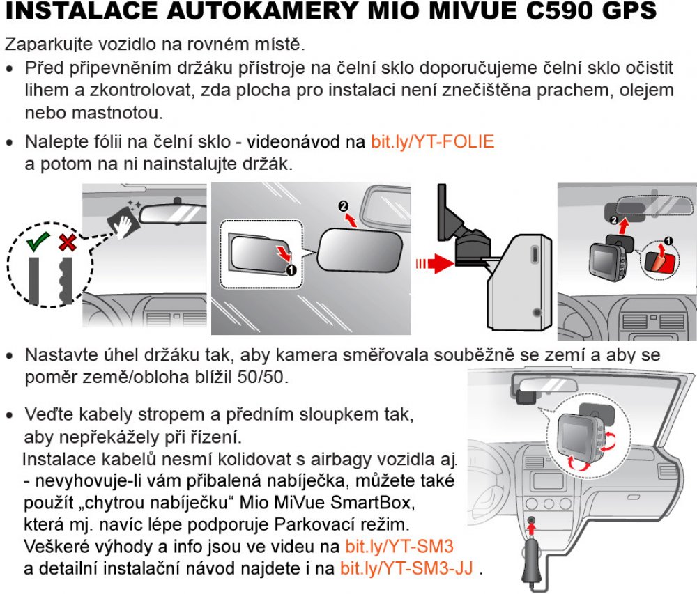 • Balení : MiVue C590, lepící držák , statická nálepka na sklo, nabíječka do auta, návod