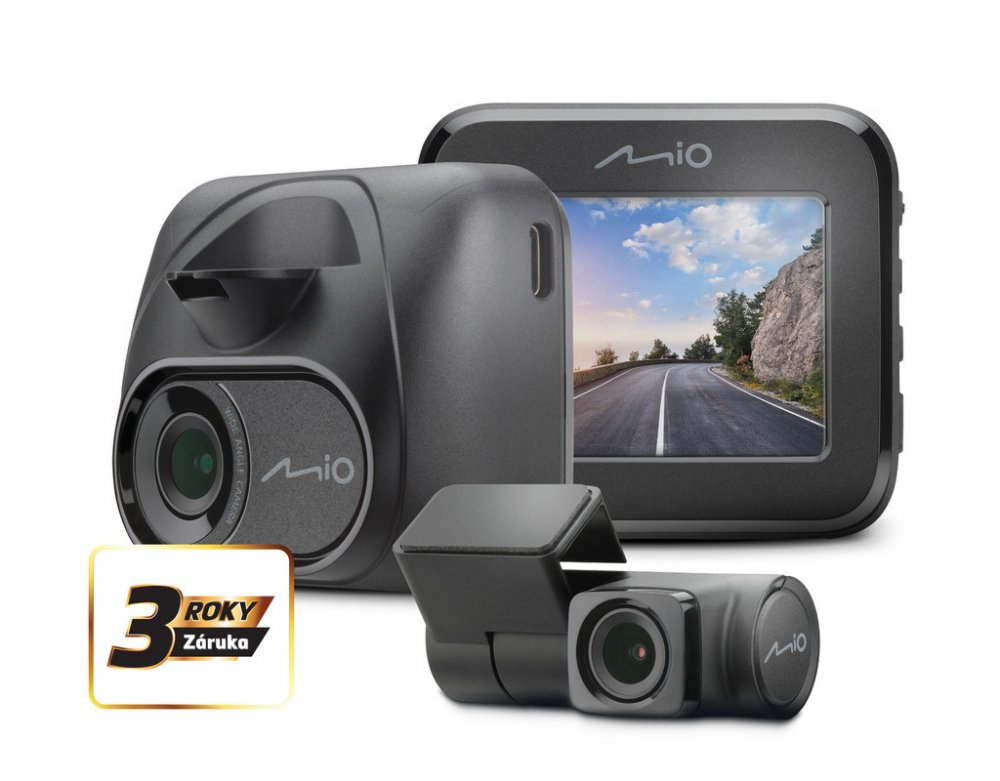 - Balení : MiVue C595WD, zadní kamera T35, 8m kabel k zadní kameře, lepící držák , statická nálepka na sklo, nabíječka do auta, návod