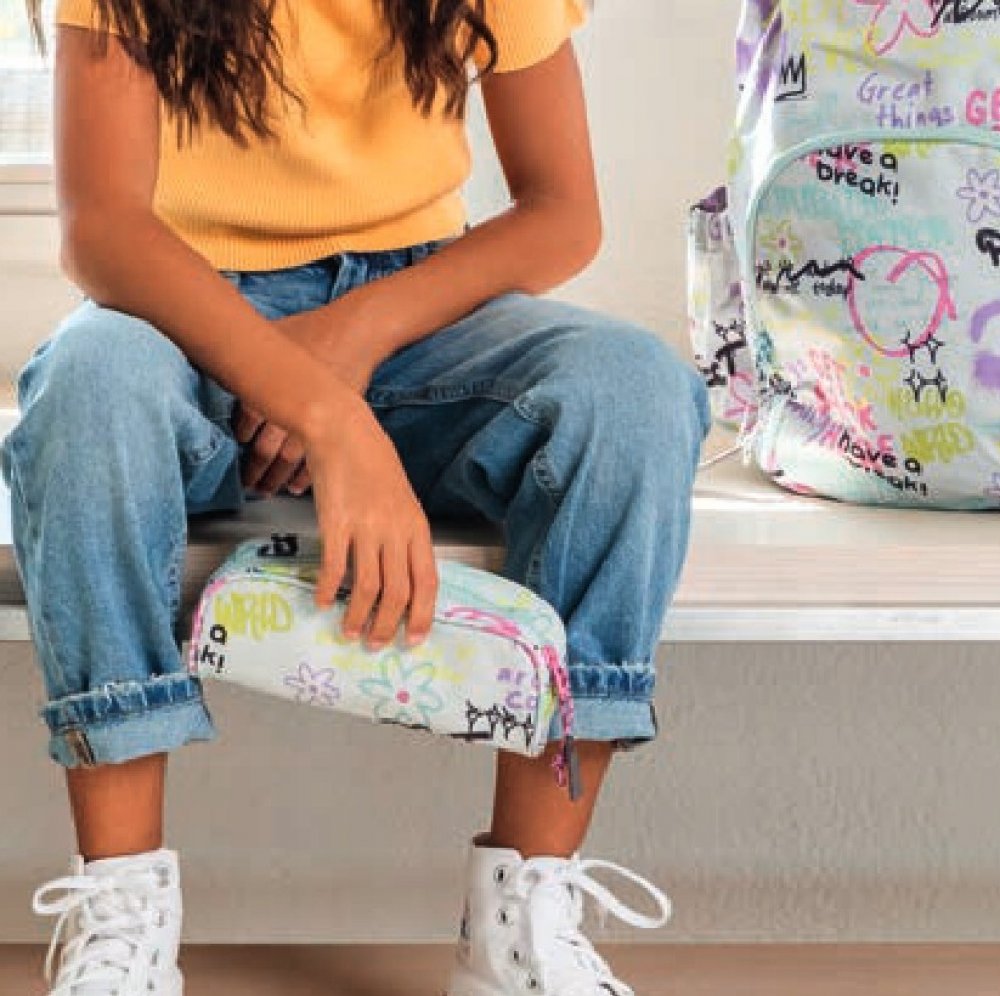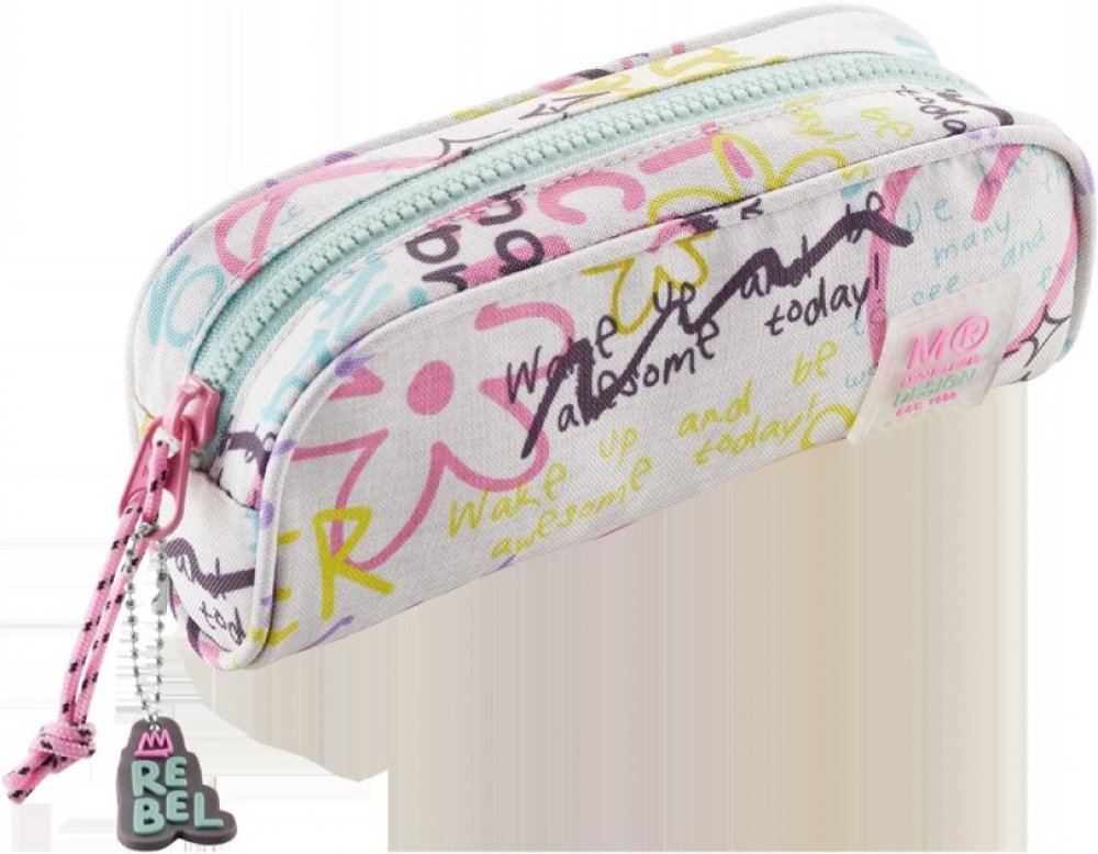Moderní, lehké pouzdro v jemném barevném motivu sladěné s kolekcí batohů Rebel. Snadné uzavírání pomocí zipu, poutko s veselým přívěskem pro lepší manipulaci. Odolný materiál prodlužuje životnost pouzdra.