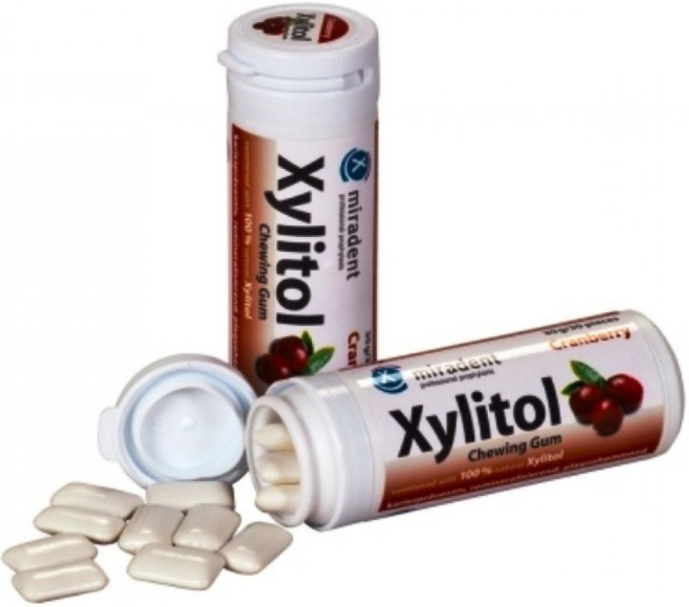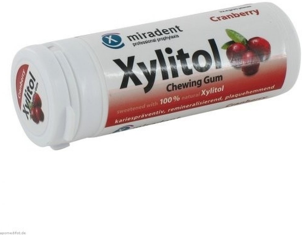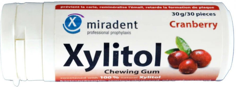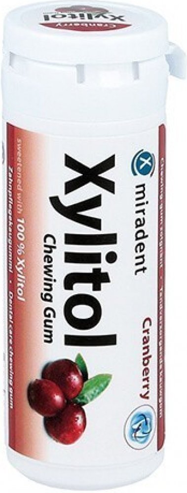 Xylitol ve žvýkačkách Miradent napomáhá udržovat v dutině ústní rovnováhu a chrání tak zuby před plakem a kazem. Zvyšuje také tvorbu slin, čímž zamezuju pocitu suchosti v ústech. Příjemná brusinková příchuť pak osvěží a probudí vaše smysly.