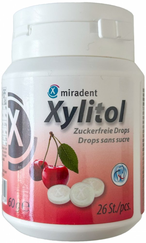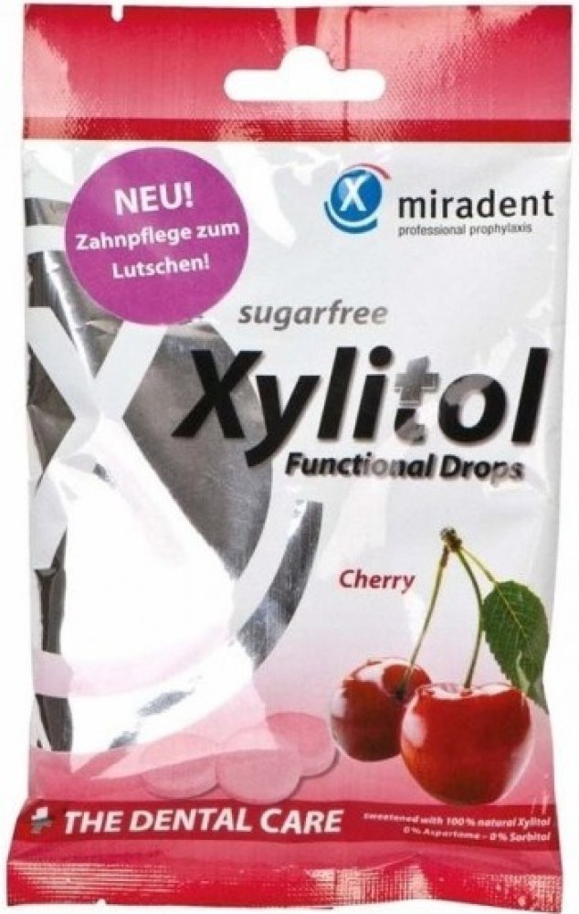 Miradent Xylitol Drops bonbony s obsahem xylitolu eliminují bakterie v ústech, snižují riziko zubního kazu a podporují remineralizaci zubní skloviny. Mají jemně chladivý účinek, vyvolávají pocit svěžesti v ústech. Jsou vhodné pro lidi trpící xerostomií (snížené množství slin v ústech), diabetiky.