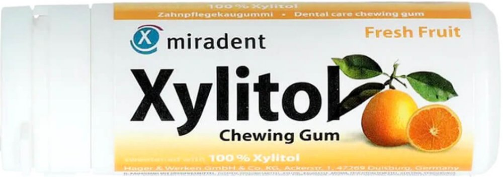 Žvýkačky Miraden Fresh fruit se odlišují od jiných žvýkaček především svým složením. Neobsahují totiž žádná umělá sladidla, přidaný cukr, lepek či laktózu. Za to v nich najdete přírodní xylitol, který napomáhá udržovat zuby zdravé a čisté. Vhodné žvýkačky při nízkosacharidovém stravování. Vychutnejte si výbornou ovocnou chuť žvýkaček Miradent Fresh Fruit, a přitom pečujte o svou ústní dutinu.