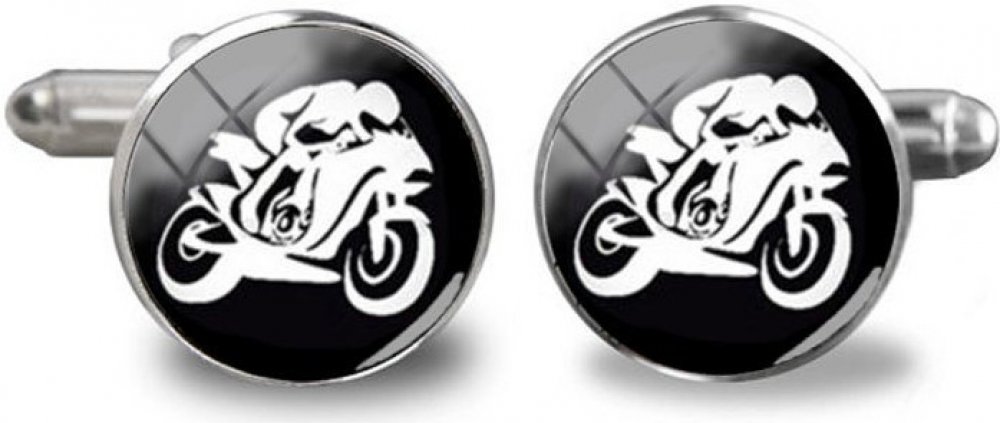 Manžetové knoflíky pro příznivce motorek. Manžetové knoflíčky se nosí pouze ke košilím, které mají zesílené lemy rukávů. Knoflíčky jsou vyrobeny z bižuterního kovu s lesklou povrchovou úpravou.