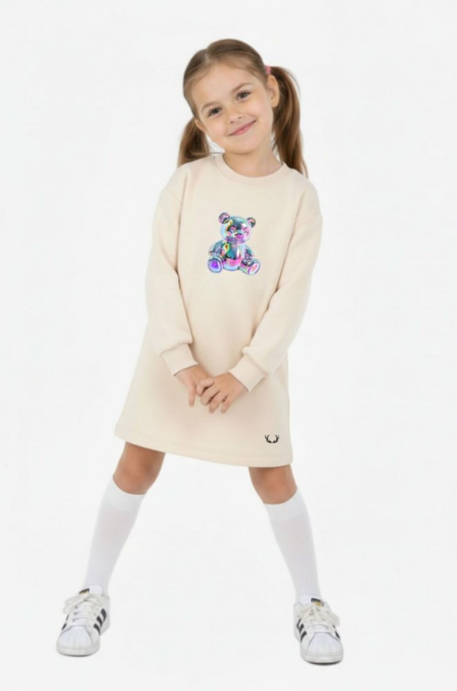 Přední část zdobí hravý holografický medvídek, zadní výrazný motivační nápis „Pink is not a weakness, it's my super power“ , který dodává šatům jedinečný charakter. Perfektní pro školu, volný čas i rodinné výlety.