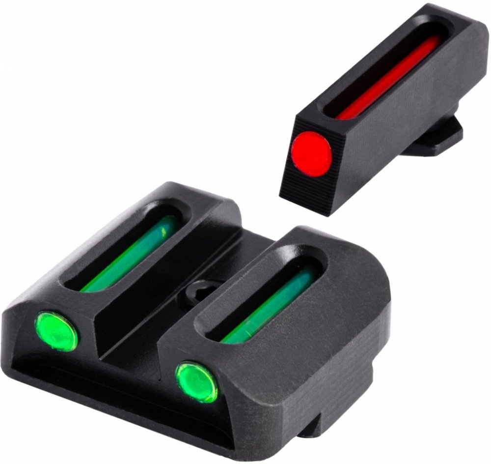 Sada optických zaměřovačů TruGlo je opatřena vysoce kontrastním 3 bodovým záměrným obrazcem z optických vláken. Tvoří ho jedna přední červená tečka a dvě zadní zelené tečky. Výrazně zlepšují rychlost střelby a usnadňují zacílení. Technologie optických vláken umožňuje, aby tyto body shromažďovaly okolní světlo, takže mířidla jasně září bez nutnosti použití baterií. Jsou ideální pro všechny typy střelby za denního světla i při slabém osvětlení (pozor - NESVÍTÍ ve tmě). Pro výměnu mířidel je vhodné oslovit odborný servis.