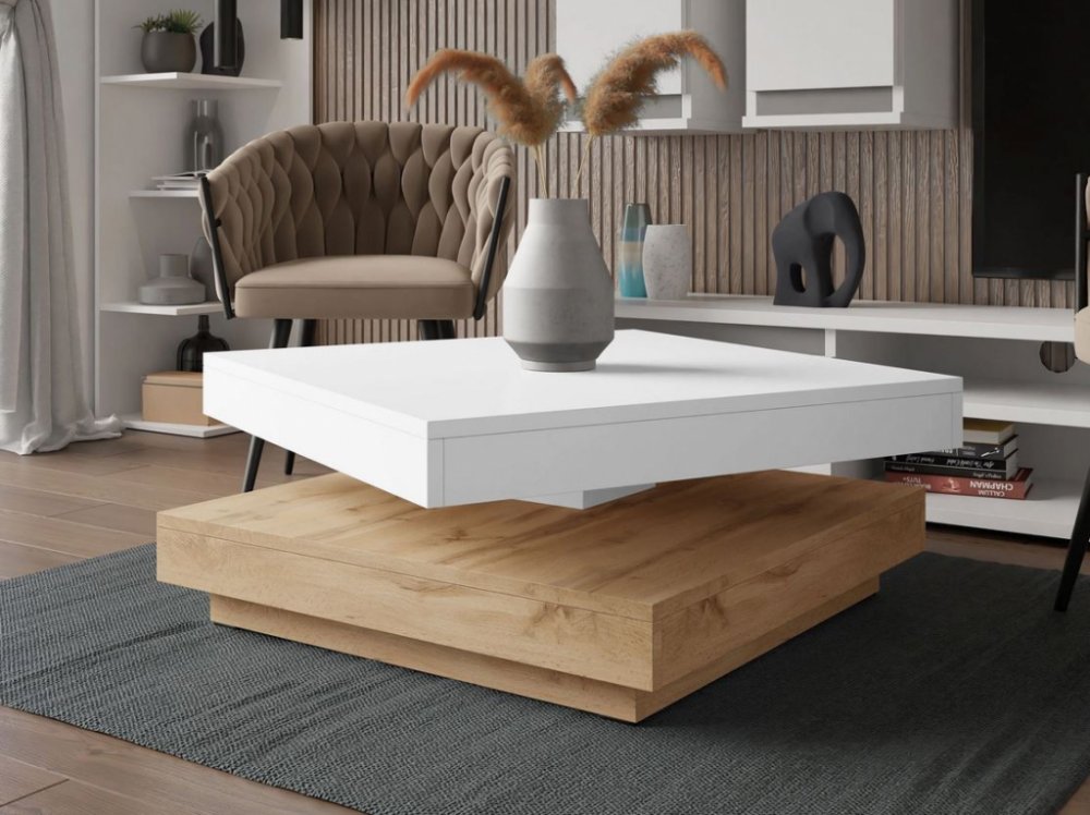 Hledáte moderní konferenční stolek, který bude hlavní ozdobou vašeho obývacího pokoje? Konferenční stolek GREGORIO nabízí dvě desky, přičemž spodní deska poskytuje stabilní základnu a horní deska se dá otočit o 360 stupňů díky speciálnímu mechanismu. Pohyblivá deska nejen poskytuje funkčnost, ale také zajímavý dekorativní akcent pro váš obývací pokoj. Rozměry:šířka: 70 cmvýška: 34 cmhloubka: 70 cm...