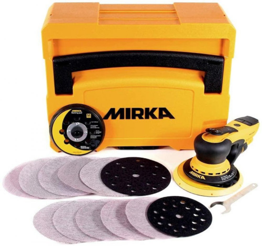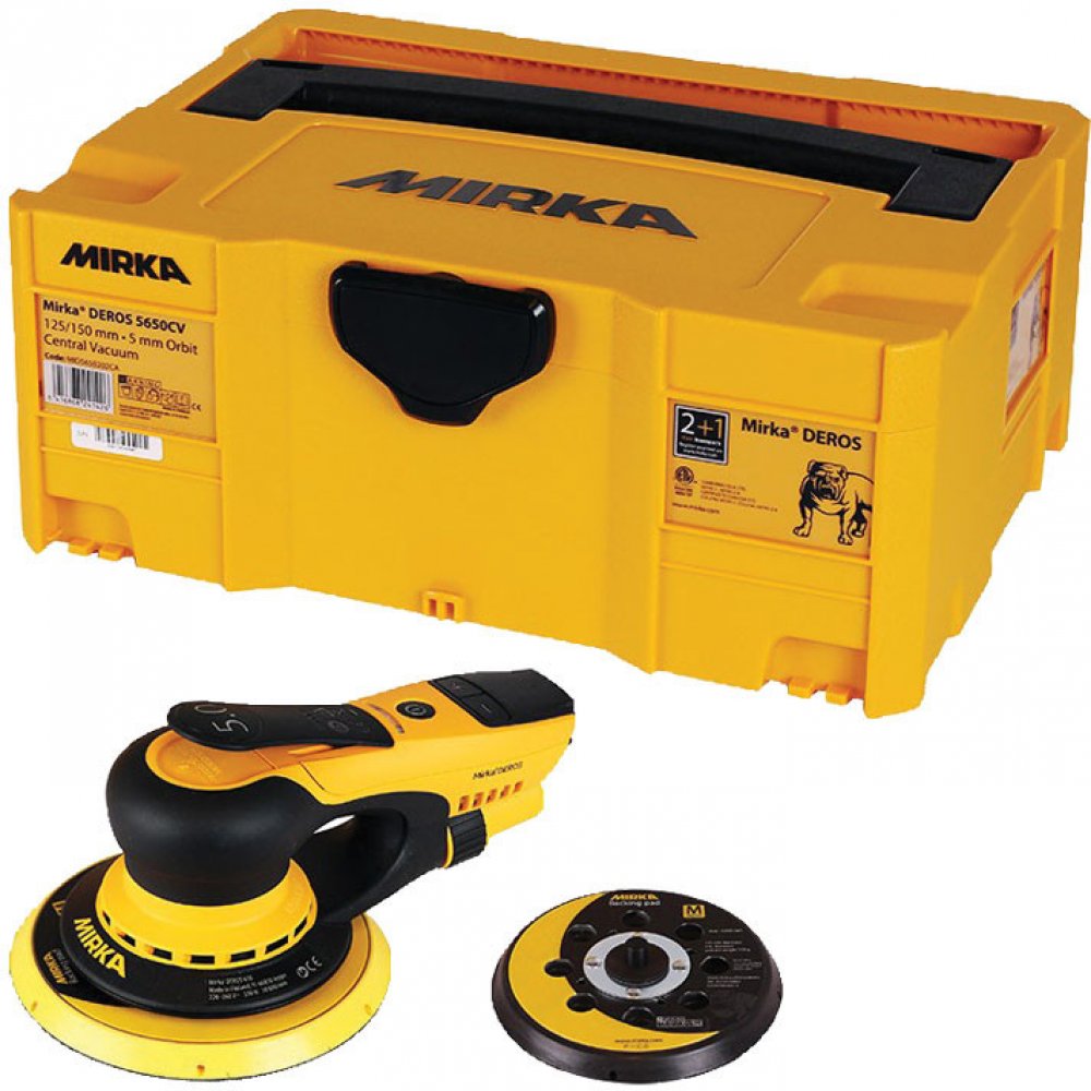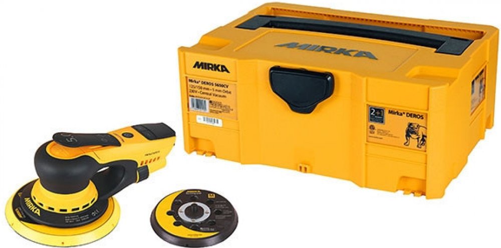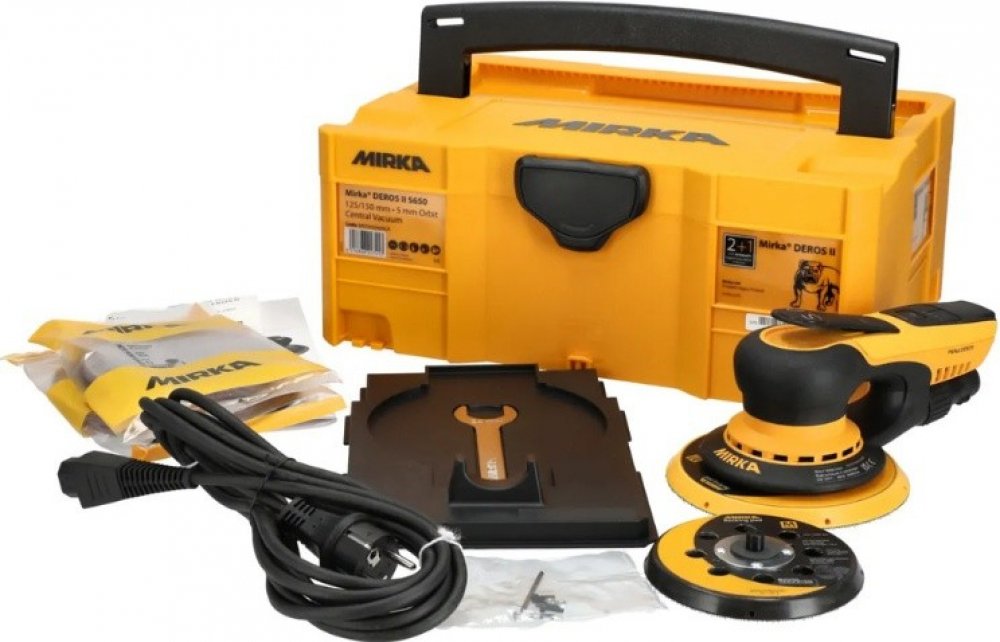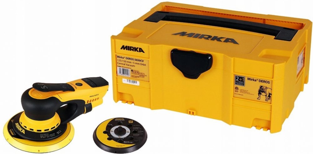MIRKA® DEROS 5650CV je dodávána ve vysoce kvalitním plastovém boxu, spolu s podložným talířem 2v1.