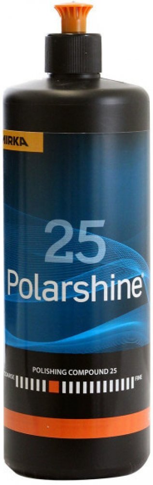 Pasta na leštění autolaku (pro gelové laky, tzv. gelcoaty), láhev 1 litr – MIRKA Polarshine 25 7992710111 Přípravek určený na jemnější leštění povrchů pomocí leštiček (cca 800 – 2000 otáček za minutu). Odstraňuje brusné stopy a další poškození na laku. Větší balení, vhodné pro profesionální autolakovny, autoservisy apod. Neobsahuje silikony.