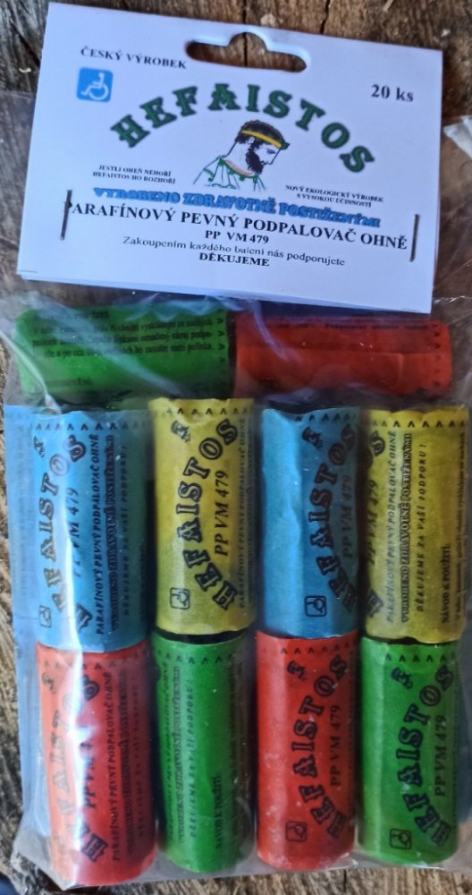 Vlastnosti výrobku a jeho účinnost byla ověřena na stovkách porovnávacích zkoušek s obdobnými výrobky prodávanými na našem trhu, ve ztížených přírodních podmínkách a u našeho výrobku bylo dosaženo vynikajících výsledků. Parafínový pevný podpalovač ohně HEFAISTOS nepotřebuje pro zapálení ohně žádné podpůrné prostředky jako je papír, třísky apod.