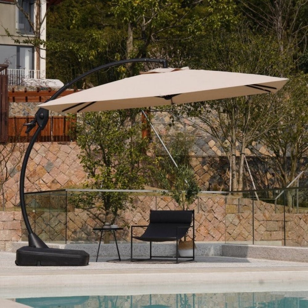 Solano zahradní slunečník s baldachýnem 3x4m Zahradní slunečník s obdélníkovým přístřeškem o průměru 3x4 metry je pohodlný způsob, jak zastínit venkovní relaxační zónu. Sloupek a rameno jsou vyrobeny z hliníku, který se vyznačuje vyšší odolností vůči nepříznivým povětrnostním vlivům a korozi. Materiál vrchlíku je polyester, který je ideální pro venkovní použití. Zahradní deštník s UV a voděodolnou stříškou Stříška deštníku je vyrobena z 250g/m2 polyesteru s PU zátěrem, který je UV odolný - třída UPF 50+, což znamená, že propouští méně než 2,5% záření. Materiál vrchlíku je také voděodolný. Deštník poskytuje účinnou ochranu nejen před sluncem, ale i před lehkým deštěm. Prostorný slunečník na zahradu a terasu Velká plocha přístřešku a boční konstrukce umožňují zastínění větší plochy relaxační plochy a její 100% využití. Nastavovací mechanismy použité v konstrukci ovlivňují kvalitu každodenního používání deštníku a umožňují jeho optimální přizpůsobení individuálním potřebám. Módní design v kombinaci s béžovou stříškou zapadá do současných trendů interiérového designu. Základní informace Šířka: 300 cm Výška: 270 cm Hloubka: 400 cm Barva: Béžová Materiál vrchlíku: Polyester 250g/m2 s PU zátěrem pro dodatečnou ochranu, odolnost látky vůči UV záření - třída UPF 50+ (propouští méně než 2,5 % záření, výborný výsledek), materiál je voděodolný Materiál rámu: Hliník s práškovým nástřikem, průměr hlavní trubky 60 mm, tloušťka stěny 2,7 mm Další informace: Vrchlík s 8 rameny, naviják pro navíjení a odvíjení vrchlíku, nastavení polohy a úhlu vrchlíku, plastový podstavec pro plnění vodou nebo pískem opatřený kolečky