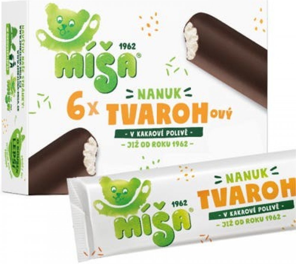 Cena se může v jednotlivých regionech lišit. -- Míša tvarohový je nejstarší z klanu a hlava rodiny. Tvaroh, jak ho máte nejraději, v křupavém kakaovém županu. V tomto balení je 6krát Míša tvarohový. Značka Míša začala psát svou historii v roce 1962, kdy se vyrobil první nanuk Míša na dřívku. Jeho základ tvořil tvaroh a byl politý v kakaové polevě. Míša tvarohový se v nezměněné podobě zachoval až d...