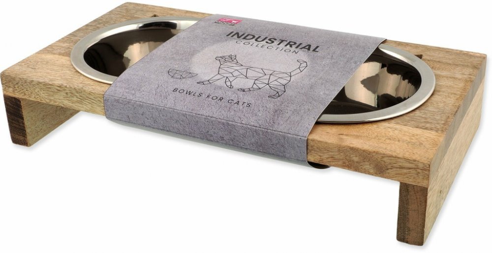 Dvě misky v pevném dřevěném stojánku – praktické a stylové řešení Praktická sada dvou nerezových misek v elegantním dřevěném stojánku. Ideální řešení pro podávání vody i krmiva, které spojuje funkčnost a moderní design.