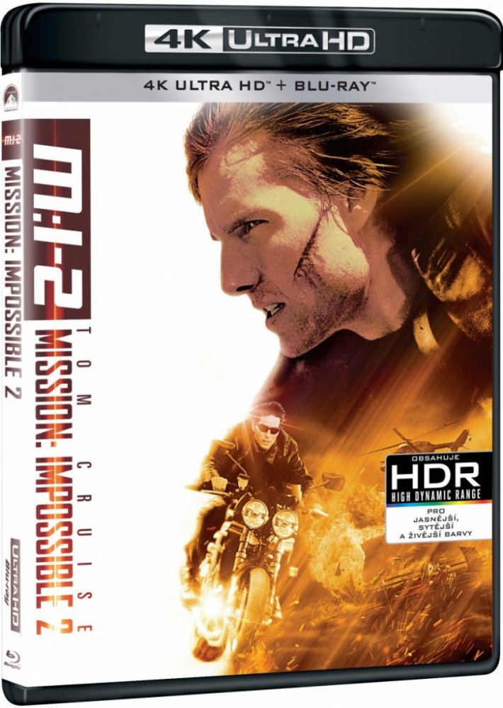 Do pokračování slavného filmu vnesl své pojetí napětí přední odborník na akční filmy John Woo. Aby překazil plány bývalého agenta Seana Ambrose (Dougray Scott), který se chystá zaútočit na nic netušící lidstvo, musí se Ethan Hunt (Tom Cruise) spojit s krásnou Nyah Hall (Thandie Newton). Než svoji misi úspěšně splní, budou si muset oba zvolit mezí tím, co milují a tím, v co věří. Hrají: Tom Cruise, Dougray Scott, Thandie Newton, Ving Rhames, Richard Roxburgh, John Polson, Brendan Gleeson, Rade Serbedzija, William Mapother, Dominic Purcell, Mathew Wilkinson, Nicholas Bell, Cristina Brogeras, Kee Chan, Kim Fleming V českém znění: Gustav Bubník, Jitka Moučková , Filip Jančík, Martin Kolár, Jiří Dvořák, Zdeněk Mahdal, Jaromír Meduna , Jiří Plachý, Bohuslav Kalva , Roman Hájek, Pavel Vondra, Zbyšek Pantůček, Radka Stupková, Ladislav Novák, Helena Dytrtová, Martin Kot, Pavlína Dytrtová, Pavel Dytrt, Bohdan Tůma, Antonín Navrátil Režie: John Woo Kamera: Jeffrey L.Kimball Hudba: Hans Zimmer Scénář: Robert Towne Produkce: Terence Chang, Tom Cruise, Michael Doven, Paul Hitchcock, Paula Wagner Zvukové formáty: česky Dolby Digital 2.0 / anglicky DTS-HD Master Audio 5.1 / polsky Dolby Digital 2.0 / thajsky Dolby Digital 5.1 Titulky: české, anglické, indonéské, kantonské, malajsijské, mandarínské, polské, portugalské, řecké, thajské Obrazové formáty: 16:9 / 2,35:1 Zvukové formáty UHD: česky Dolby Digital 2.0 / anglicky Dolby TrueHD 5.1 / anglický komentář Dolby Digital 2.0 / mandarínsky (Tchaj-wan) Dolby Digital 2.0 / maďarsky Dolby Digital 5.1 / polsky Dolby Digital 2.0 / rusky Dolby Digital 5.1 / thajsky Dolby Digital 5.1 / turecky 2.0 Titulky UHD: české, anglické, anglický komentář, arabské, estonské, hebrejské, islandské, kantonské, korejské, korejský komentář, litevské, lotyšské, maďarské, malajsijské, mandarínské, mandarínské (Tchaj-wan), polské, portugalské (Evropa), rumunské, ruské, řecké, thajské, turecké Bonusy: UHD: • Komentář režiséra Johna Woo