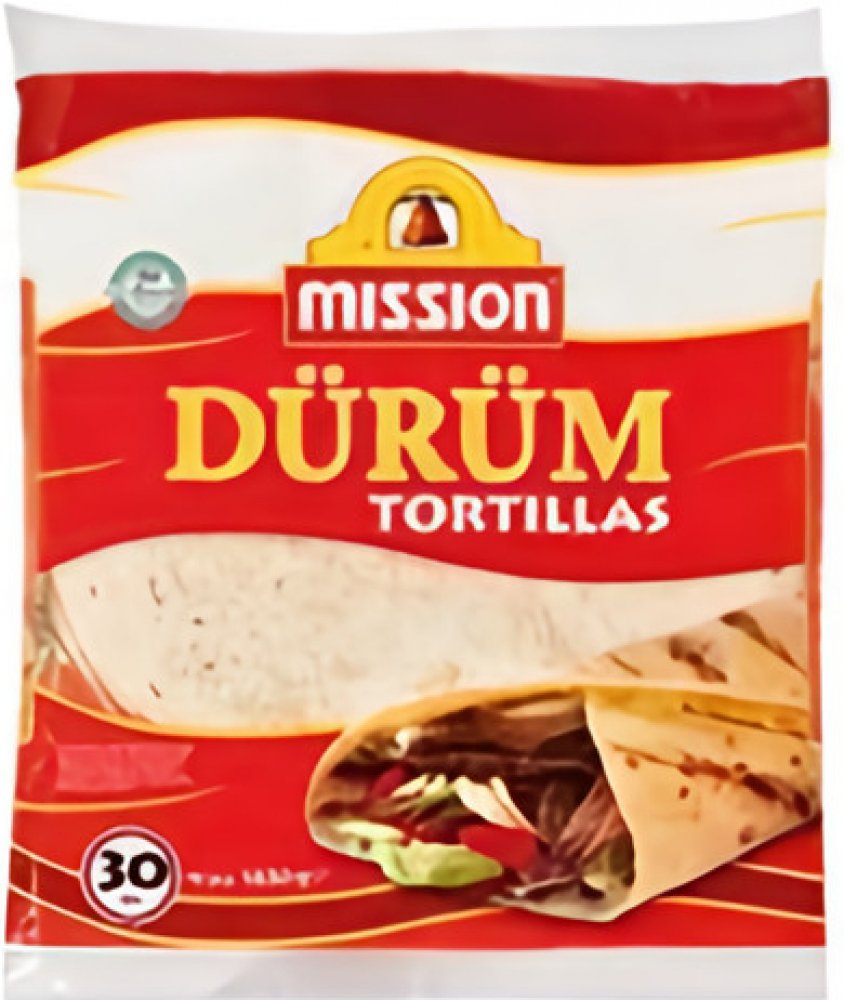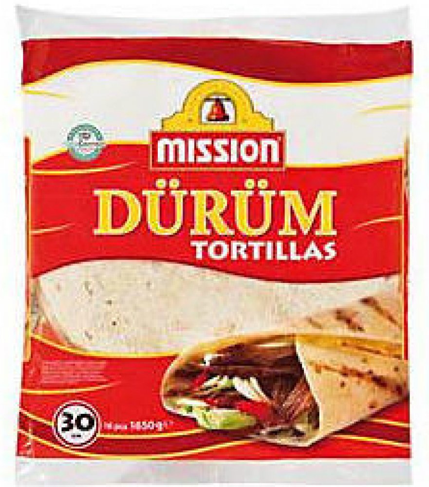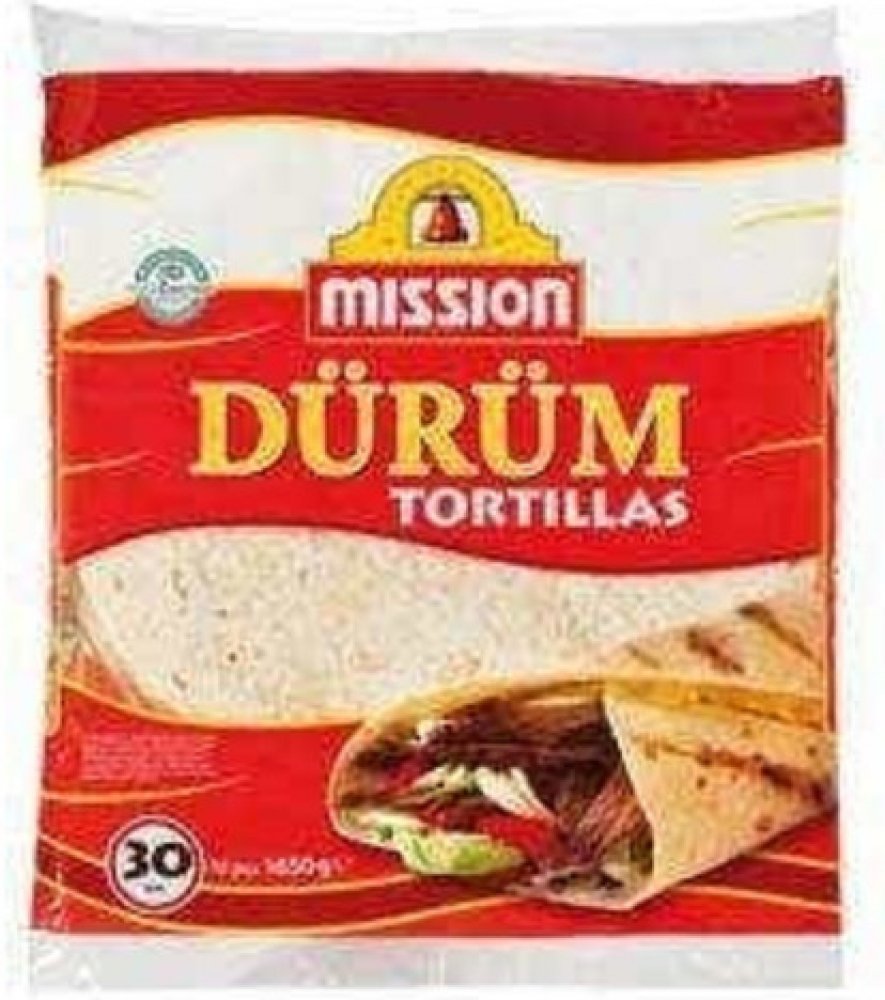 Tortilla Mission Dürüm 12" 18x90g Mission Lahůdkové placky Dürüm průměr 30cm, 18ks v balení Složení: PŠENIČNÁ mouka ( pšeniční lepek), voda, palmový tuk, stabilizátory ( glycerol, E466), kyseliny ( kyselina citrónová, kyselina jablečná), sůl, kypřící látka (E500), konzervační látky (E202, E282), aroma. VHODNÉ PRO VEGETARIÁNY Výživové hodnoty ve 100g:Energetická hodnota 1298 kJ/ 308 kcalTuk 6.9g ( ...