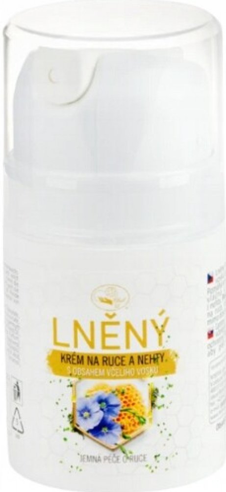 Lněný krém na ruce a nehty s obsahem včelího vosku zanechává na pokožce jemný ochranný film. Má zklidňující, hydratační a regenerační vlastnosti díky panenskému lněnému oleji, vitamínům, glycerolu, extraktu z Aloe Vera, alfa Bisabololu a keratinu. Ošetřuje a regeneruje i nehty.