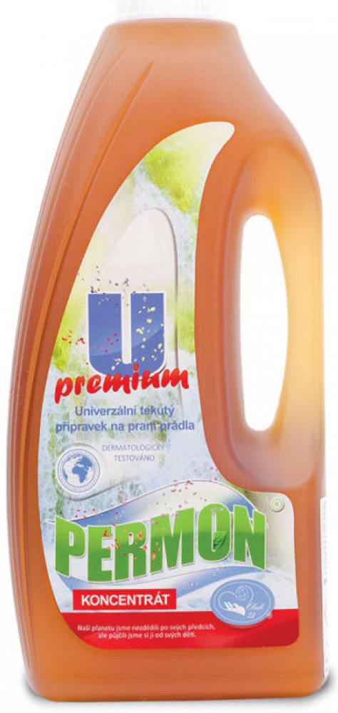 Missiva Permon U Premium univerzální prací gel Permon U Premium je vynikající univerzální, tekutý, vysoce koncentrovaný přípravek na praní barevného i bílého prádla (kromě vlny a hedvábí) ve všech typech pračekpři teplotách 10 – 60°C. Obsahuje složky účinně chránící barvy. V kombinaci s bělící složkou Permon B Percarbonát i na bílé prádlo. Jeho součástí je velmi účinný ekologický systém změkčující vodu prací lázně. Tím se výrazně zvyšuje prací účinnost mýdlové složky přípravku (mýdlo v tvrdé vodě vločkuje a nepere), které je jinak dosahováno za přidání Permonu Z. Navíc je vybaven nejmodernějším enzymatickým komplexem – 6 enzymů, které zvyšují prací účinnost a ošetřují vlákno. Prádlo je po vyprání měkčí i bez použití Permonu M. Používáním ekologického pracího programu Permon získáte: spokojenou zdravou pokožku a příjemný pocit při nošení prádla vysokou životnost barevnosti a kvality tkanin měkčí prádlo i bez použití Permonu M svěží vůni jarní přírody úsporu elektrické energii tím, že Permon U Premium je účinný i při velmi nízkých teplotách 10 – 40°C. Bělící složka má nejvyšší účinnost ve studené vodě. dobrý pocit z toho, že šetříte přírodu od fosfátů a zeolitů současně s praním i čištění pračky přípravek neobsahuje plnidla, šetříte tedy množství vody určené k máchání prádla dobrý pocit z toho, že šetříte zdraví, přírodu, čas i peníze Návod k použití: Obsah 1l výrobku je na 22 praček při dávkování 45 ml na 4,5 kg prádla. Vypere i velmi znečištěné prádlo. Proto, prosím, vyzkoušejte, kolik ml Permonu U Premium vypere vaše prádlo. Ze zkušeností spotřebitelů stačí 20 ml pracího gelu Permon U Premium na běžné praní prádla, potom je 1l Permonu U Premium na 50 praček.Tkanina je po vyprání na dotek měkká, neboť se na ní neusazují nerozpustné vápenaté a hořečnaté soli.