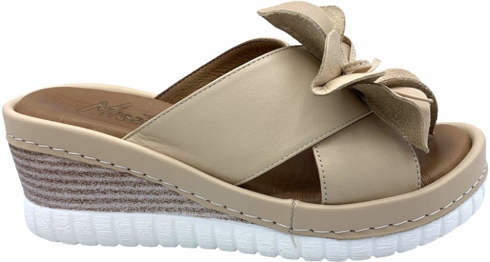 Misstic dámské kožené pantofle na klínku 1016 béžové