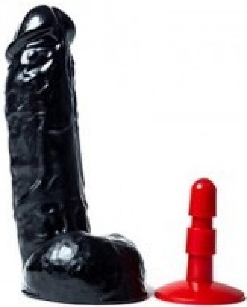 Mister B Fucktools Hammering Hank Dildo - černé vinylové dildo s odnímatelnou červenou přísavkou z kolekce Fucktools od Mister B.