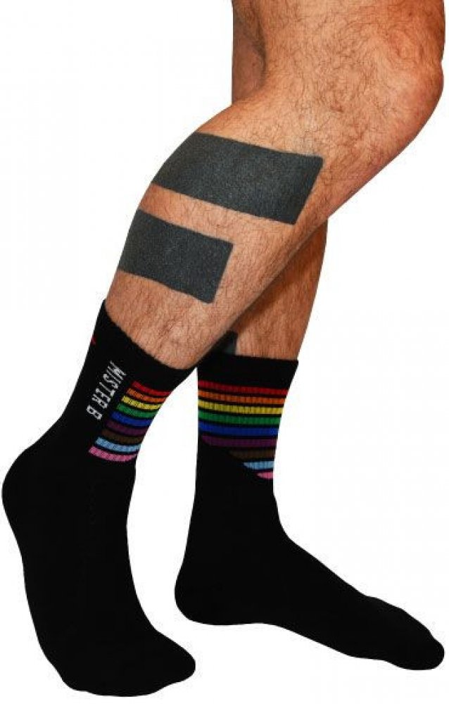 Logo Mister B dodává designu trochu výstřednosti. Tyto sexy ponožky se hodí k většině oblečení, ať už jste na akci Pride, nebo ne!