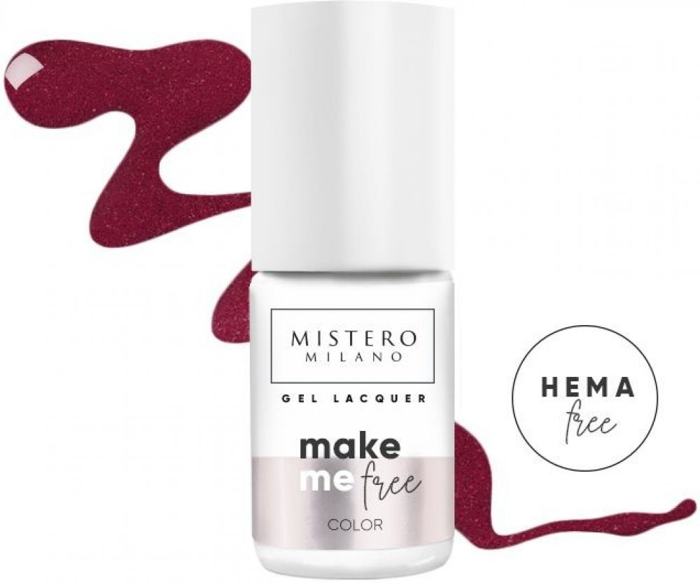 Kolekce Make Me Free obsahuje gelové laky vytvořené podle inovativní formule Hema Free, která minimalizuje riziko alergií. Naše gelové laky navíc využívají formuli Solvent Free, díky níž neobsahují žádná rozpouštědla. Tato vlastnost zajišťuje delší životnost a výjimečnou vitalitu produktu při zachování ideální konzistence, která umožňuje plné krytí při aplikaci dvou tenkých vrstev.