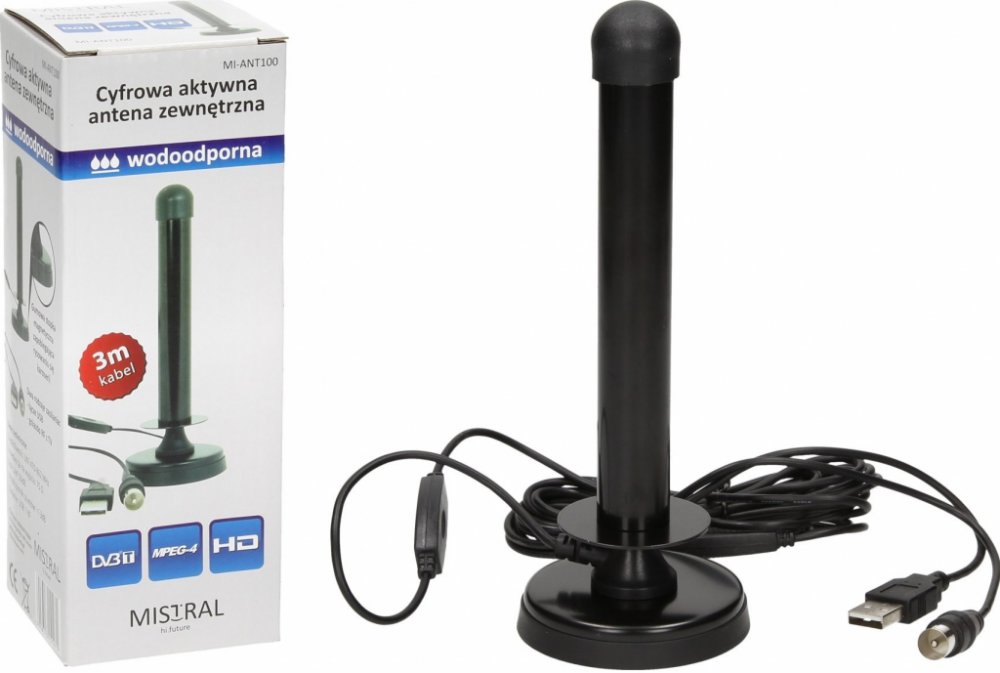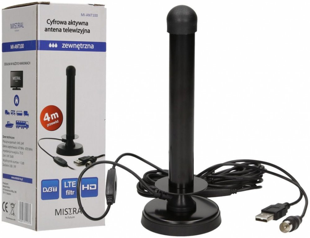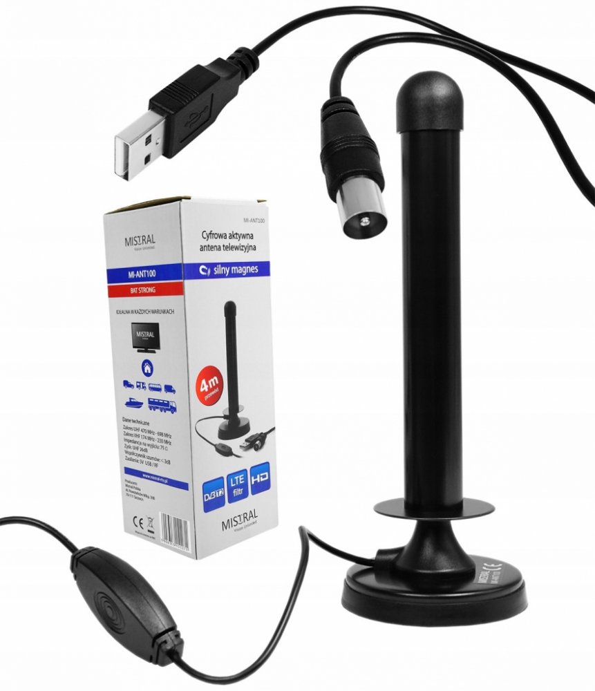Mini anténa se zesilovačem vhodná pro mobilní příjem digitálního pozemního vysílání DVB-T2 H.265 a digitálního DAB+ rádia. Disponuje ziskem až 26 dB. Integrovaný zesilovač lze napájet 5V z USB portu nebo USB nabíječky.