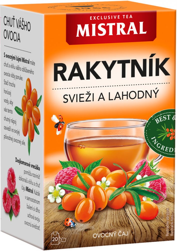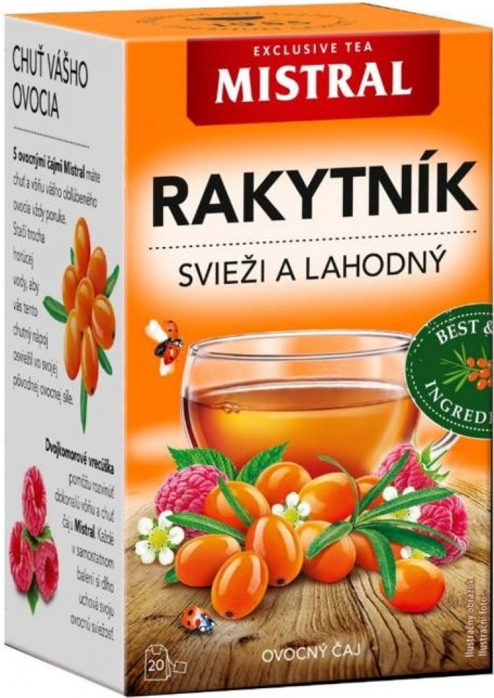 Mistral - aromatizovaný ovocný čaj s rakytníkem v sáčcích.