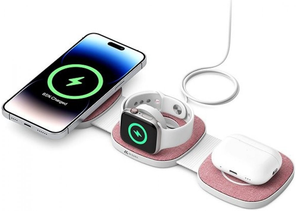 Tento elegantní a praktický pomocník vám umožní nabíjet mobilní telefon, Apple Watch i bezdrátová sluchátka současně. Mějte svou multifunkční nabíječku vždy po ruce, ať už doma nebo na cestách.