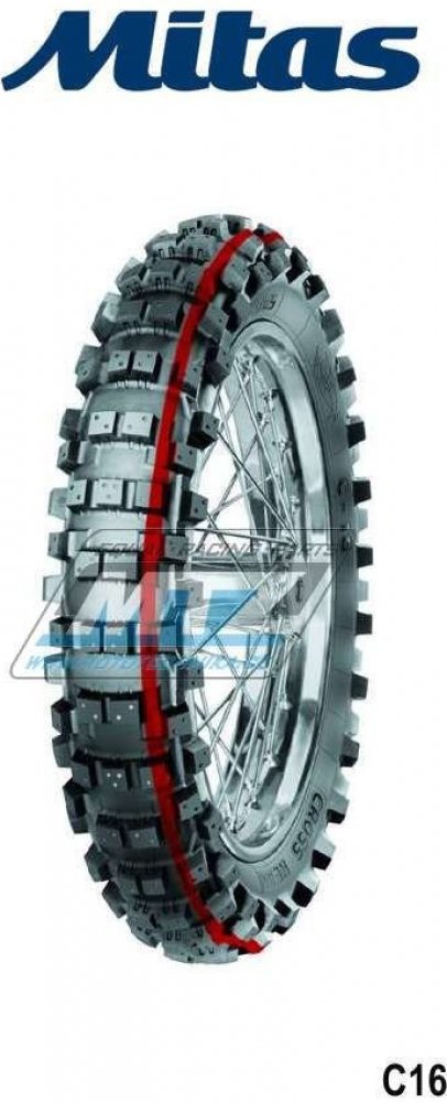 MITAS C-16 - Dezén vhodný pro zadní kola motokrosových motocyklů vhodný pro kamenitý a velmi tvrdý terén. Schváleno pro provoz na pozemních komunikacích podle DOT a EN 75, 80% terén, 20% silnice. MITAS C-16 MITAS se zabývá výrobou plášťů pro zemědělské, mimosilniční a stavební stroje, pro motocykly, vysokozdvižné vozíky, pro lehké nákladní automobily a některá letadla. Mitas je tradiční český výro...