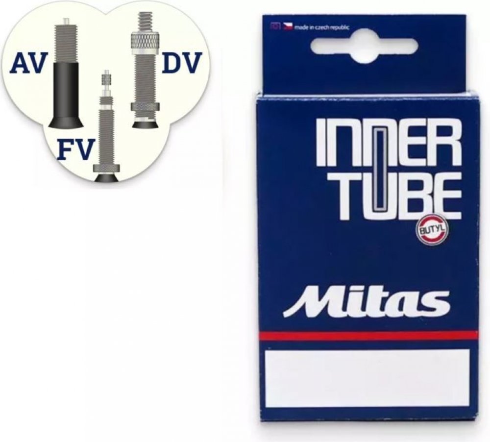 Duše Mitas z kvalitního kaučuku od českého výrobce pro 24" dětská kola, městská kola a vozíky. Klasický veloventilek 40mm.