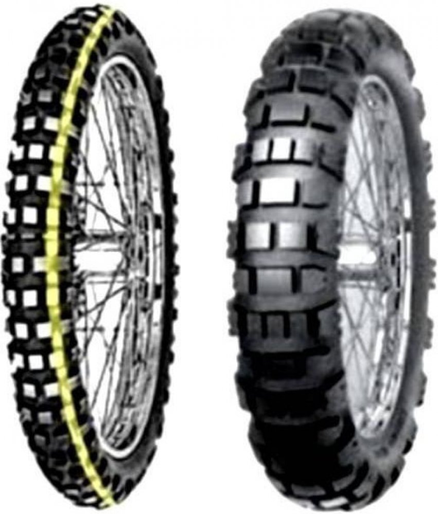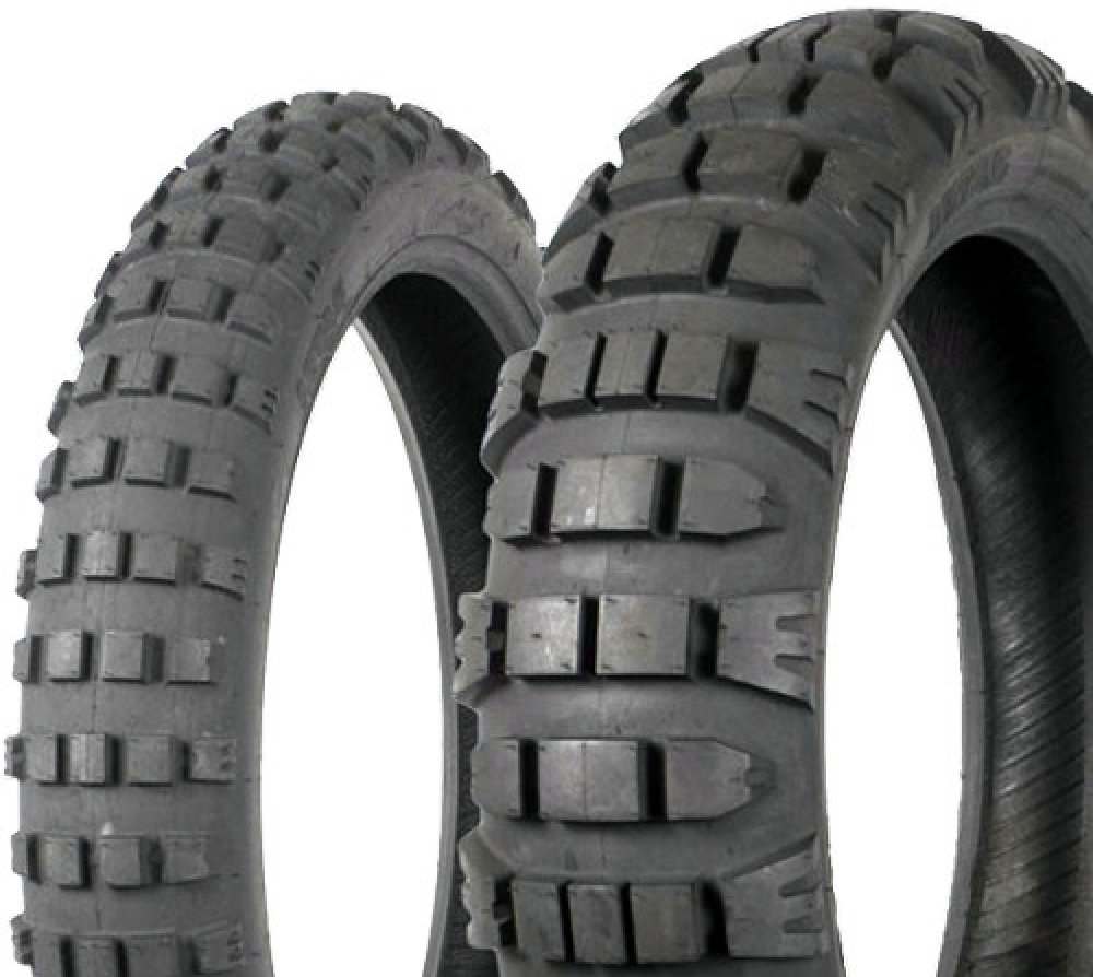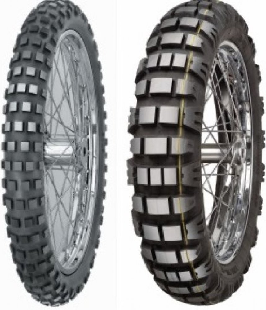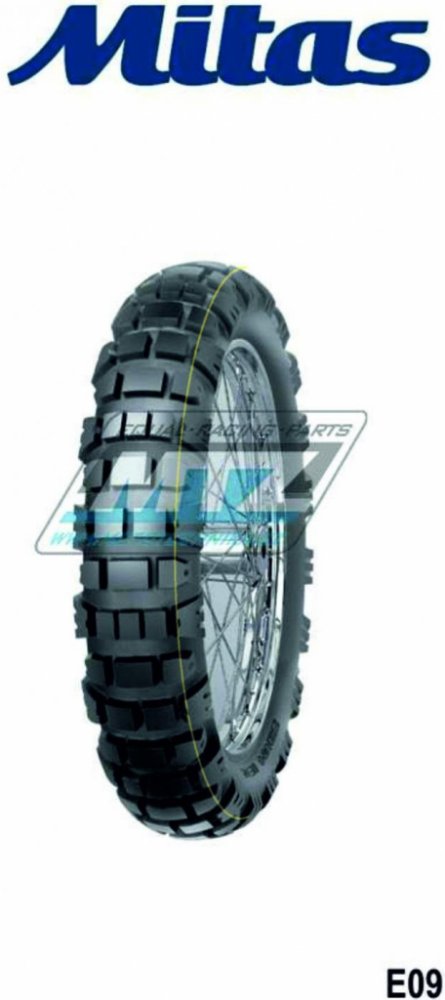E-09 DAKAR Pneumatiky pro cestovní enduro (20% silnice / 80% terén) Dezén pneumatiky vhodný k jízdě v terénu. Vynikající tažná síla a výborná stabilita na silnici za suchých i mokrých podmínek. K dispozici také v nabídce Dakar. Speciální provedení s dodanými nárazníky z textilního vlákna. Odolná konstrukce pneumatiky je vhodná na delší cestování. Pneumatika má dlouhou životnost a je velmi odolná.