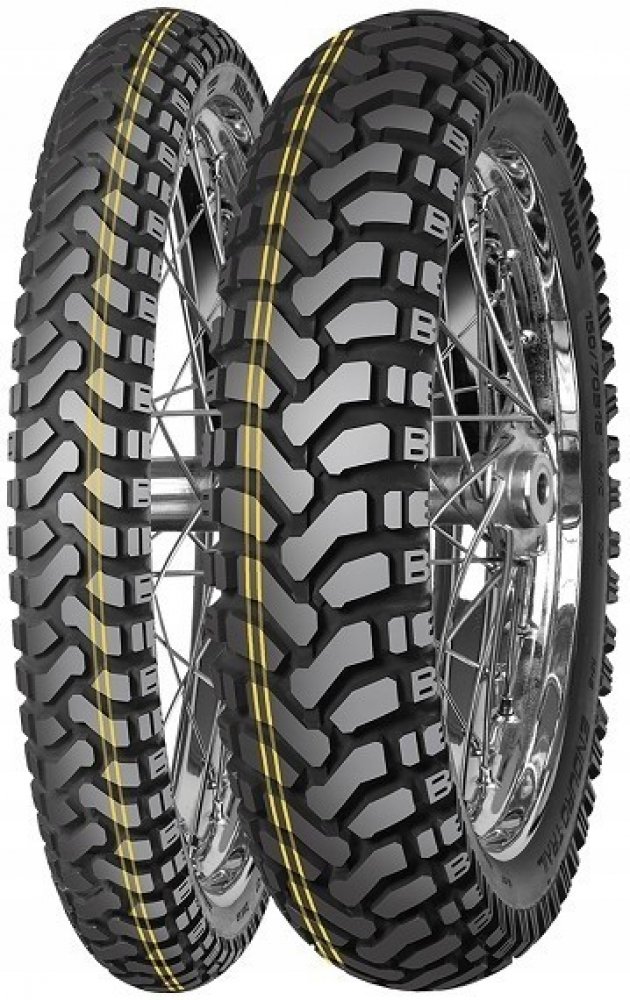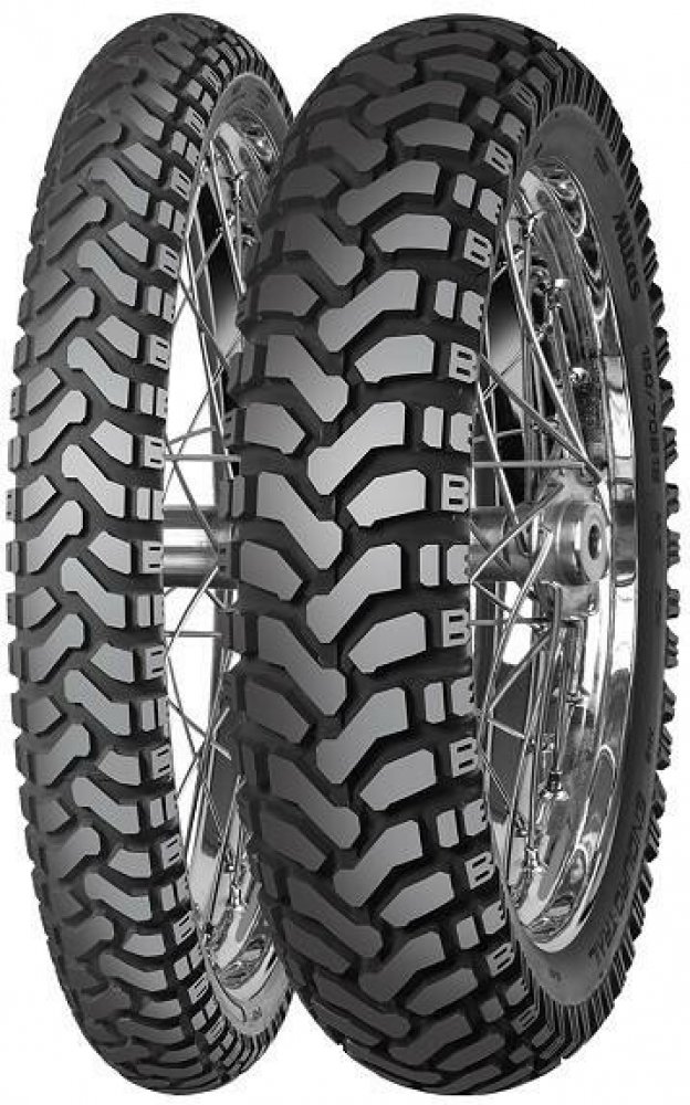 # Mitas Enduro Trail – Výkonné terénní pneumatiky pro náročné podmínky Mitas Enduro Trail je ideální volbou pro jezdce, kteří hledají spolehlivé a odolné terénní pneumatiky kombinující výbornou trakci s dlouhou životností. Tyto pneumatiky jsou navrženy pro motocykly určené do terénu i pro použití na silnici, což je činí perfektním řešením pro enduro a off-road zážitky. Díky vyváženému vzoru běhoun...