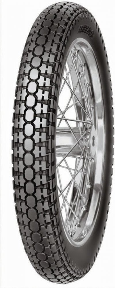 Univerzální vzorek pneumatiky s dezénem vhodným jak na přední, tak i na zadní kola motocyklu. Zvláště vhodná na veterány.K dispozici najdete také ve verzi se Super Side s vyztuženou bočnicí pro postranní vozíky. MITAS se zabývá výrobou plášťů pro zemědělské, mimosilniční a stavební stroje, pro motocykly, vysokozdvižné vozíky, pro lehké nákladní automobily a některá letadla. Mitas je tradiční český výrobce (převzal výrobu motocyklových, nákladních a traktorových plášťů od Barumu). Mitas vyrábí některé traktorové pláště i pro jiné výrobce zemědělských pneu. Vysoká kvalita pneu Mitas a tradice mu dávají status nejprodávanější značky v ČR pro traktorové a částečně nákladní pneu.