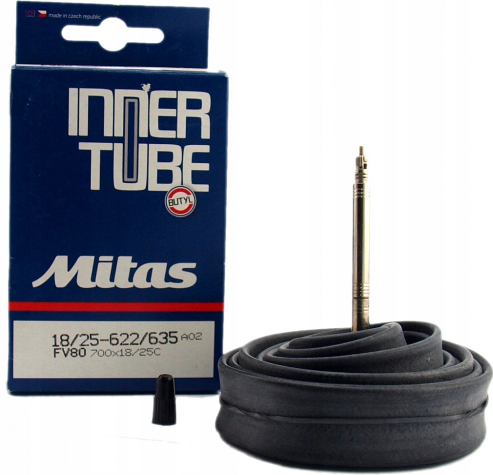 Mitas SV40 19" x 23x2,25 (2 1/4 - 19) - Duše na kolo v krabičce Mitas Duše je vyrobena z prvotřídního butylového kaučuku, který udržuje tlak po dlouhou dobu a má velmi dobrou odolnost proti propíchnutí.