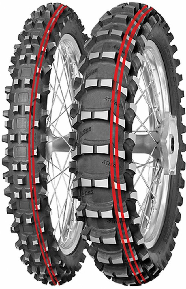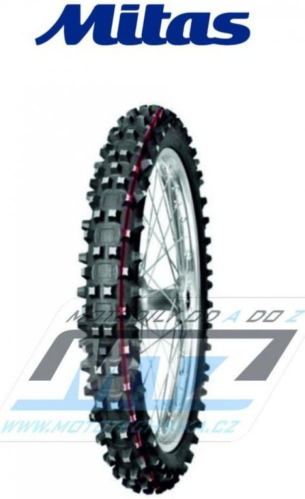 Pro jezdce, kteří trénují nebo závodí v měkkém terénu a hledají vynikající trakční výkon i kontrolu.Pneumatika TERRA FORCE-MX SAND má hluboký dezén ve tvaru chevronu (šípový vzor), který je ideální do hlubokého měkkého písku, umožňuje jistou jízdu bez ztráty stability i na středně těžkém terénu. Přední část je navržena tak, aby zajistila maximální kontrolu při zatáčení a brzdění na stejných typech terénu.Poznáte ji podle charakteristických dvou červených pruhů, a je klasifikována jako NHS (Not for Highway Service – použití na veřejných komunikacích není přípustné). Navržena pro závod MotoXross na měkkém volném terénu, poskytuje skvělou trakci, kontrolu a stabilitu. Vysoce výkonná směs tvrdé pryže zajišťuje trakci a kontrolu. Doporučená pro motocykly MotoXrossa je k dispozici pouze jako přední pneumatika. MITAS se zabývá výrobou plášťů pro zemědělské, mimosilniční a stavební stroje, pro motocykly, vysokozdvižné vozíky, pro lehké nákladní automobily a některá letadla. Mitas je tradiční český výrobce (převzal výrobu motocyklových, nákladních a traktorových plášťů od Barumu).