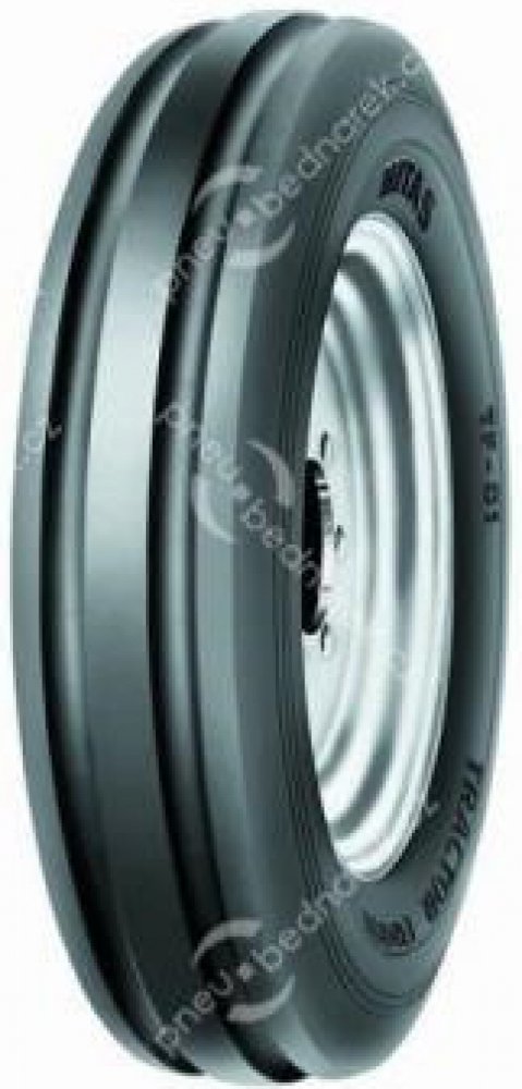 Mitas TF-01 - žebrovaný dezén bez bočních prvků nebo zubů, vhodný pro přední vodící kola traktorů. Diagonální konstrukce. , výrobce MITAS