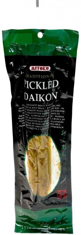 Nakládaná ředkev je tradiční japonská delikatesa vyrobená z pečlivě zpracované bílé ředkve, známé jako daikon. Ředkev je fermentována a nakládána podle tradiční receptury, díky čemuž získává lehce pikantní, slanokyselou chuť a jemně křupavou strukturu.