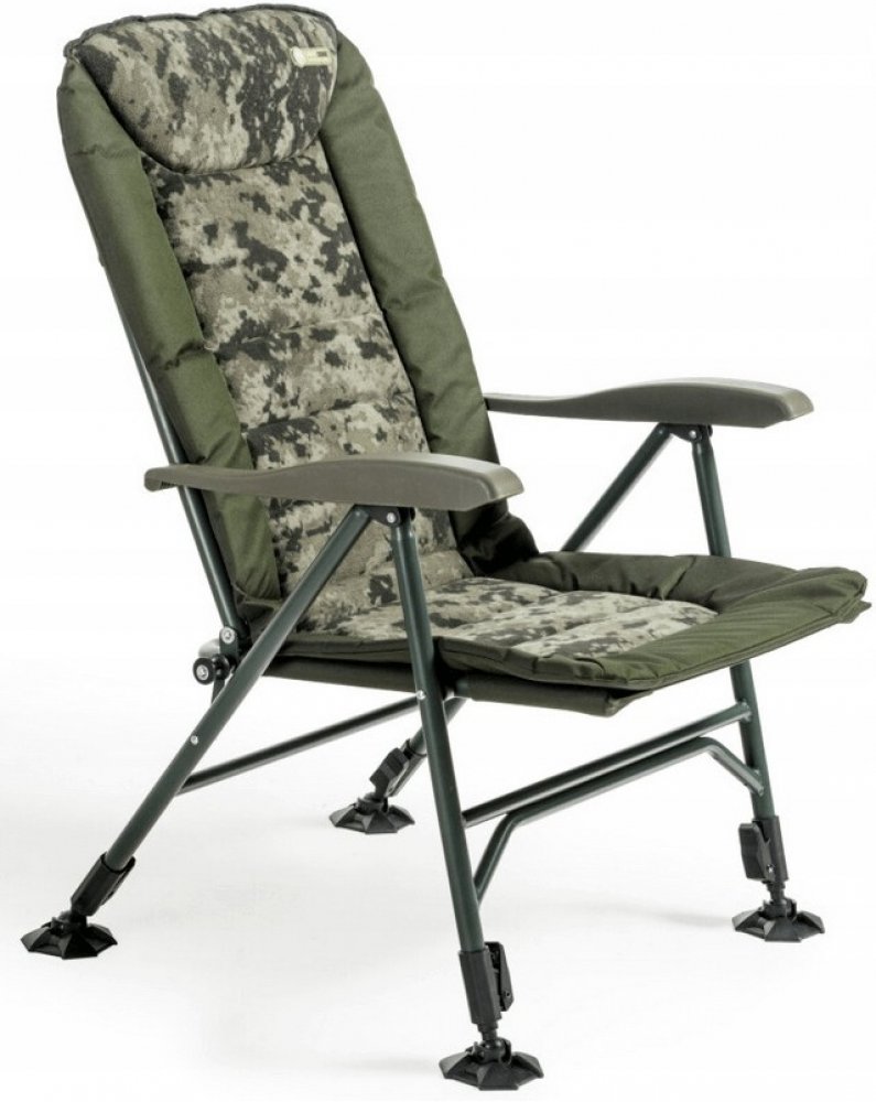 Luxusní verze našeho nejprodávanějšího křesla Comfort Quattro s velmi pohodlnou fleecovou matrací v moderním stylu CamoCODE. Využívá populární a zcela spolehlivý systém sklopení opěradla při zvedání područek. Je postaven na mimořádně lehkém a pevném hliníkovém rámu s nosností 160 kg. Křeslo je vybaveno novými vyvinutými bahenními nohami a novými zámky na nohy v jedinečném designu Mivardi. Čtyři samootevírací teleskopické nohy lze snadno ovládat krátkým stisknutím páčky zámku