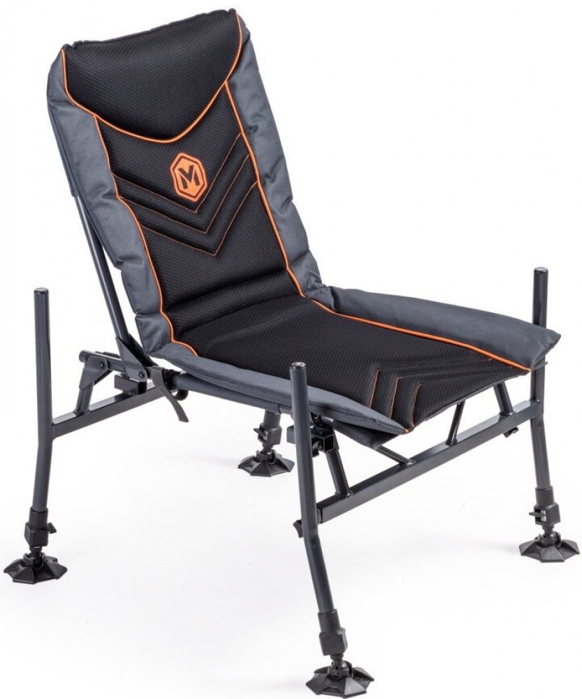 Speciální křeslo pro lov na feeder. Je osazeno čtyřmi teleskopickými nohami pro snadné ustavení na nerovném břehu. Nohy mají průměr 25mm a proto umožňují nasazení nejrůznějšího příslušenství, které je pro tento průměr snadno dostupné. Přední nohy umožňují variabilní vysunutí do stran a tím i dosažení ještě vyšší stability. Anatomické tvarování matrace je podpořeno i tvarováním rámu sedáku. Optimálně zvolené polstrování zajišťuje vysoký komfort i při dlouhém sezení. Toto křeslo může být doplněno o unikátní přepravní systém (dostupný samostatně). Ten z křesla během několika vteřin udělá stabilní transportní vozík, který zajistí pohodlnou přepravu celé vaší výbavy.