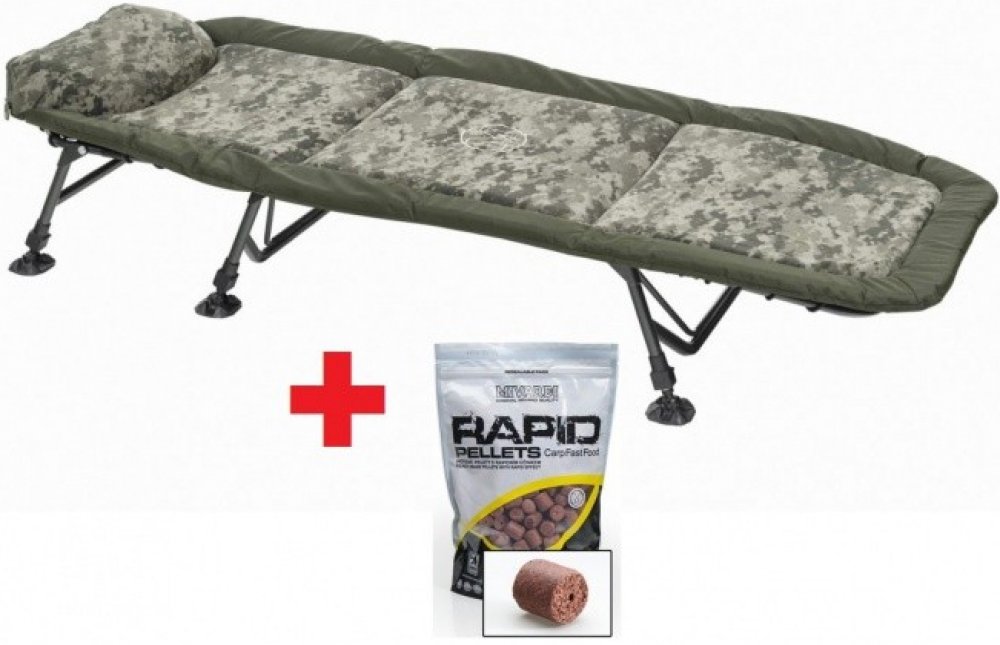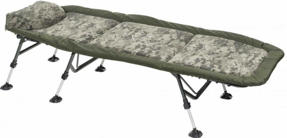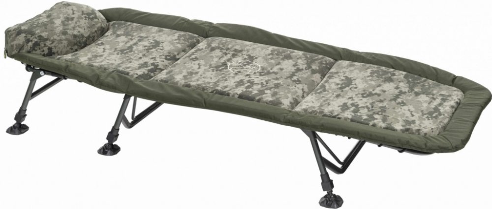 Extrémně lehké, velké a 100% ploché lehátko ve velice atraktivním designu s digitálním maskováním. Nadstandardně silná a velmi komfortní matrace s fleecovou vrchní vrstvou nabízí nejúčinnější systém regulace tuhosti pomocí elastického šněrování na spodní straně. Další výhodou jsou nohy s rozměrnými výkyvnými patkami a možností velkého vysunutí. Lehátko je dostupné ve variantě s osmi nebo se šesti nohami.