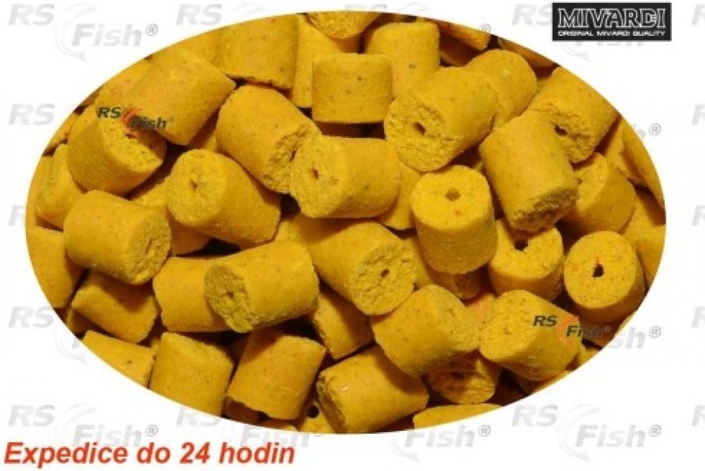 Atraktivní pelety s maximálním podílem extrudované kukuřice. Jejich hlavní výhodou je vynikající stravitelnost a vysoká atraktivita. Mají velmi příjemné nasládlé aroma mléčné kukuřice. Atraktivní pelety s maximálním podílem extrudované kukuřice. Jejich hlavní výhodou je vynikající stravitelnost a vysoká atraktivita. Mají velmi příjemné nasládlé aroma mléčné kukuřice. Díky pečlivě sestavené receptuře a pokročilé výrobní technologii spolehlivě pracují již několik minut po zakrmení bez ohledu na teplotu vody. K úplnému rozpuštění dojde v závislosti na průměru a teplotě vody během několika desítek minut až několika hodin. Velmi dobře absorbují nejrůznější boostery a tekuté potravy, které umožní jejich další zatraktivění a zároveň prodlouží dobu rozpadu.Průměr 4mm bez dírky.