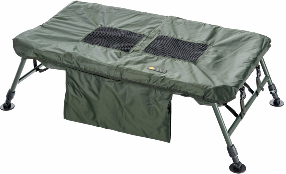 Zároveň umožňuje polévání ryby vodou přes pogumovanou mřížku. Voda odtéká otvory na obou čelech.