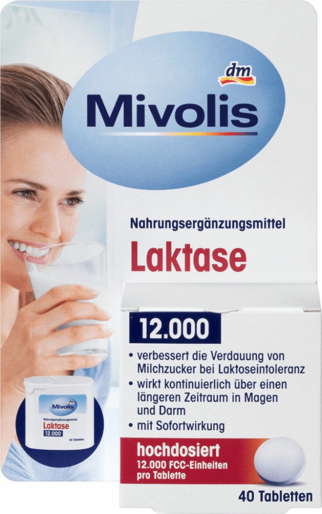 Mivolis tablety laktáza 12 000 je doplněk stravy s obsahem laktázy, která je určena pro zlepšení trávení mléčného cukru. Doplněk stravy je tedy vhodný zejména při intoleranci laktózy. Složení tablet neobsahuje lepek ani laktózu.