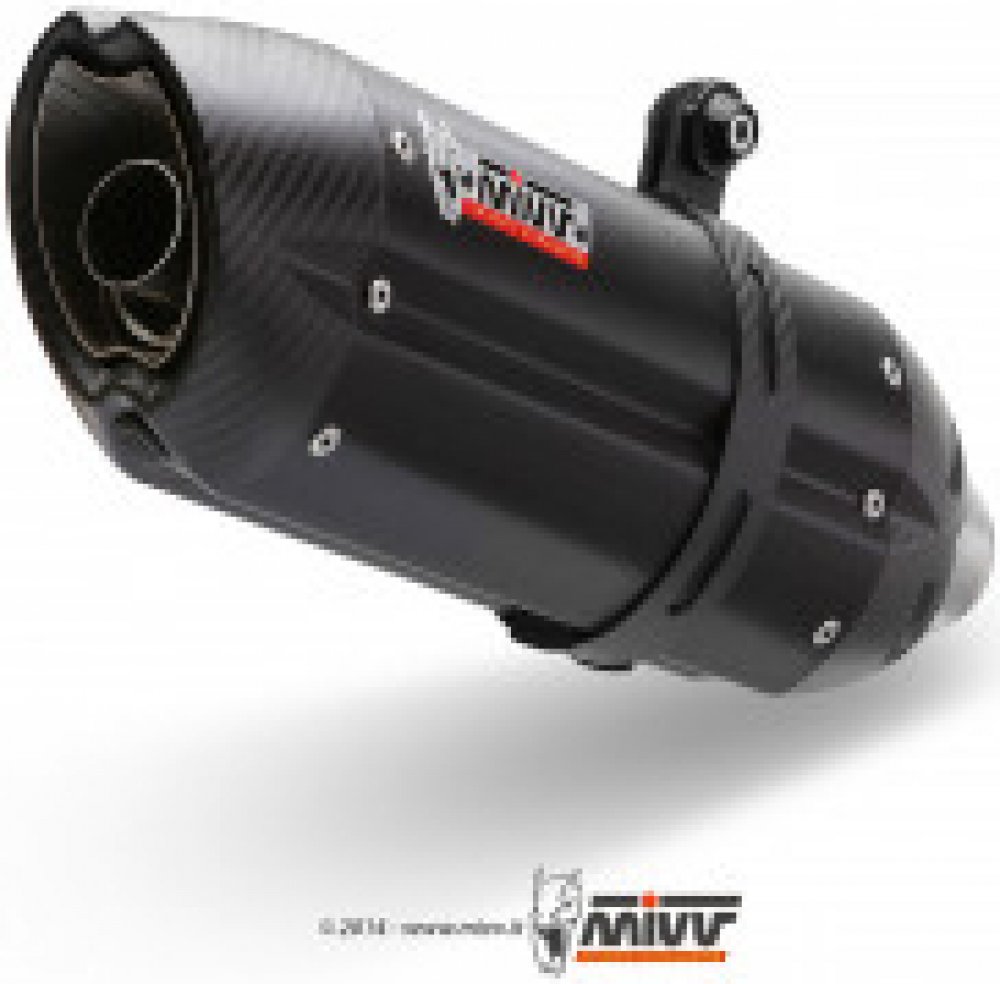 "Navržené tak, aby zlepšily vzhled, zvuk a výkon vašeho motocyklu. Výfuky MIVV jsou výsledkem maximálního důrazu na design s úmyslem uspokojit ty, kteří se chtějí odlišit vzhledem svého motocyklu. MIVV SUONO perfektně kombinuje skvělý vzhled, inovace a vyspělé technologie. Je vyroben z nejlepších materiálů, které umožňují zachovat nízkou hmotnost. SUONO je pouze jedno, to originální od MIVVu. MIVV SUONO je výfuk navržený v Itálii. Je to jediný výfuk na světě se dvěma karbonovými víčky. Je to výfuk pro ty, kteří vyžadují opravdovou exkluzivitu. Tento výfuk je tak jedinečný, že se bohužel na internetových obchodech objevují jeho asijské kopie, které používají plast místo karbonu a další druhořadé materiály, které nesplňují bezpočnostní požadavky a postrádají homologaci. Doporučujeme kupovat SUONO pouze u oficiálních dealerů MIVV! Vyroben z černé nerezové oceli. Efekt ""Black Satin"" získaný speciálním procesem lakováná dodává koncovce výfuku agresivní vzhled, který podtrhuje karbonové víčko. Standardní pozice - koncovka výfuku MIVV nahradí originální koncovku výfuku. Homologovaný výfuk - schváleno pro provoz na pozemních komunikacích (EC homologace)"