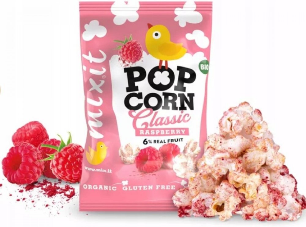 Nejstarší známé zmínky o popcornu pocházejí z Mexika a sahají až 5600 let zpět. Bylo objevení popcornu dílem náhody? To nikdo neví. Mixit malinový popcorn je však výsledkem pečlivě vybraných ingrediencí. Každé vystřelené zrnko kukuřice bylo vlastnoručně pokryto práškem z tak oblíbené lyofilizované maliny. Je to popcorn, který vás okamžitě naladí na ovocnou náladu!