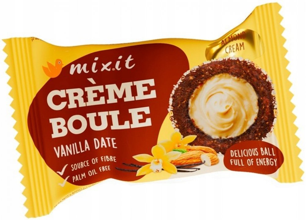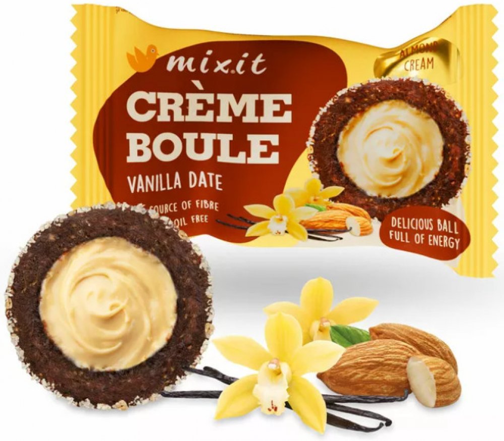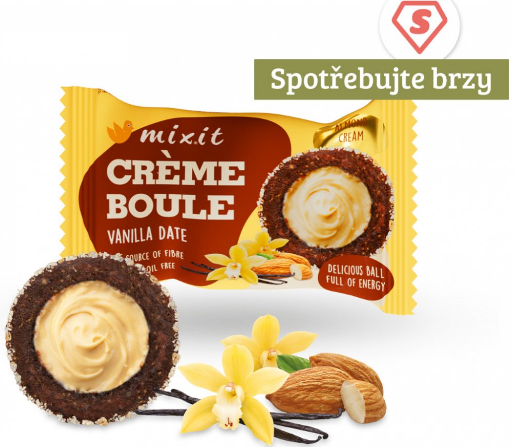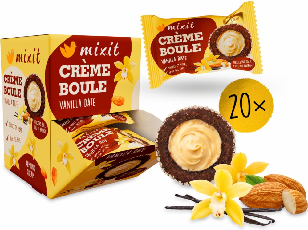 - Vanilka + Datle = Vanilla Date! Naše nové Crème boule pro všechny, kteří věří, že láska na první ochutnání existuje. Krémové koule jsou oslavou dokonalé kombinace sladkých datlí a pravé vanilky. Uvnitř každé koule objevíte sametový krém z mandlí a pravé bourbon vanilky, který je zahalený v lahodné vrstvě datlí. Pro ještě větší potěšení jsme přidali vlašské ořechy.