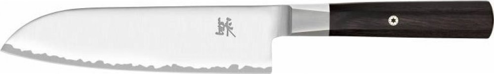 Extrémně ostrý nůž SANTOKU s autentickou japonskou čepelí je nejznámějším univerzálním nožem asijského typu. Právem je nazýván jako nůž tří ctností. Vyniká v krájení, plátkování i sekání.Každý druhý nůž prodaný v Japonsku je právě nůž SANTOKU. Jako hlavní nástroj japonského kulinářského umění si tento nůž získal rychle oblibu i v Evropě. Příprava japonského sushi se stala trendovou záležitostí a právě SANTOKU je ideálním nožem na jeho přípravu. Široká a dlouhá čepel s jemným ostřím umožní rovnoměrné rozložení síly a krájení je tak přesné a pohodlné. Vyšší faseta snižuje tření, krájení je tak přesnější. SANTOKU je dokonalým společníkem při práci s masem, rybami, zeleninou a ovocem. Nepřekonatelné vlastnosti nože oceníte například při krájení cibule. Pohodlná rukojeť "D" skvěle padne do ruky. Specificky tvarovaná záštita podpoří asijský úchop nože. SANTOKU je nezbytností při přípravě pokrmů asijských receptur.