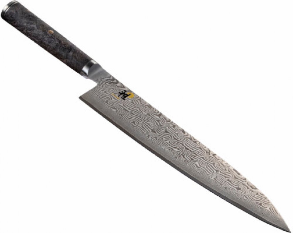 Extrémně ostrý japonský nůž GYUTOH je působivý svou stabilní čepelí v autentickém japonském tvaru. Nůž disponuje mimořádnou sílou řezu a je ideální na krájení a plátkování masa. Vyšší hrot je optimální pro kolébkový/klouzavý styl krájení. 24 cm dlouhá čepel a komfortní rukojeť "D" tvaru zajistí, že máte nad řezáním plnou kontrolu. Specifický tvar záštity skvěle podpoří asijský úchop nože. Nůž GYUTOH si svou oblibu získal i mezi šéfkuchaři západního stylu vaření.